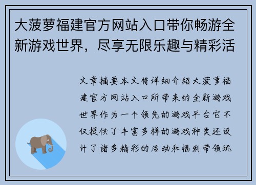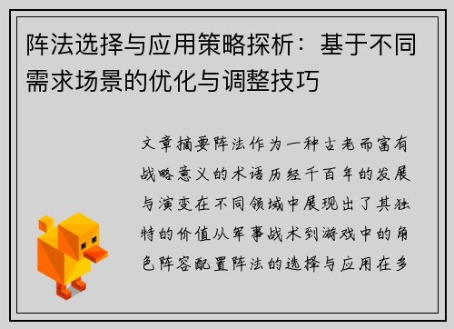 《卧龙凤雏智谋对决全攻略》是《三国志》系列游戏中的一项重要策略玩法,玩家通过选择不同的智谋组合与策略布局,力求在对战中获得胜利。在这篇文章中,我们将详细解析最强组合与策略布局,帮助玩家在游戏中脱颖而出。文章将从四个主要方面展开:角色选择与搭配、智谋技能的运用、战场布局与队形调整、以及如何应对敌方策略...